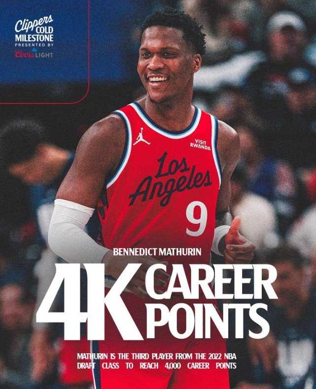目前,马瑟林常规赛生涯总得分突破4000,2022届第三人,仅次于班凯罗(5577分)和杰伦·威廉姆斯(4356分)。
