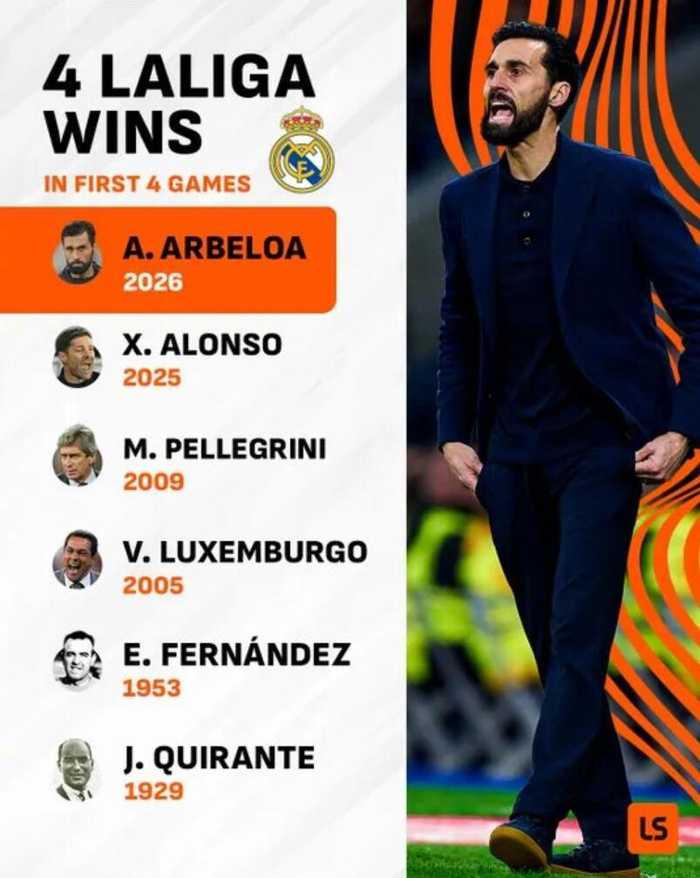 阿韦洛亚成功带领皇马以四连胜开局,成为皇马历史上第六位在首四场西甲比赛中取得四连胜的主帅。