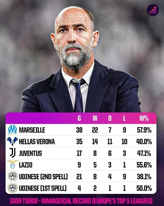 Opta盘点图多尔五大联赛执教生涯战绩: