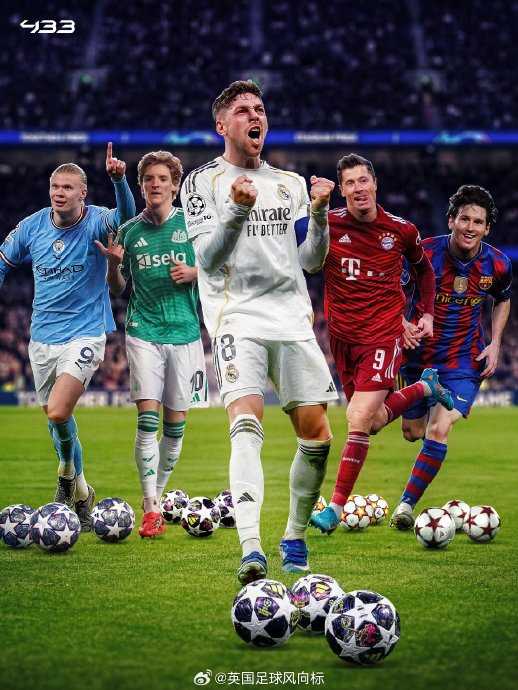 【欧冠半场戴帽仅此5人】#欧冠#淘汰赛阶段,上半时连进三球上演帽子戏法的球员,史上只有5人:梅西、莱万、哈兰德、戈登、巴尔韦德。